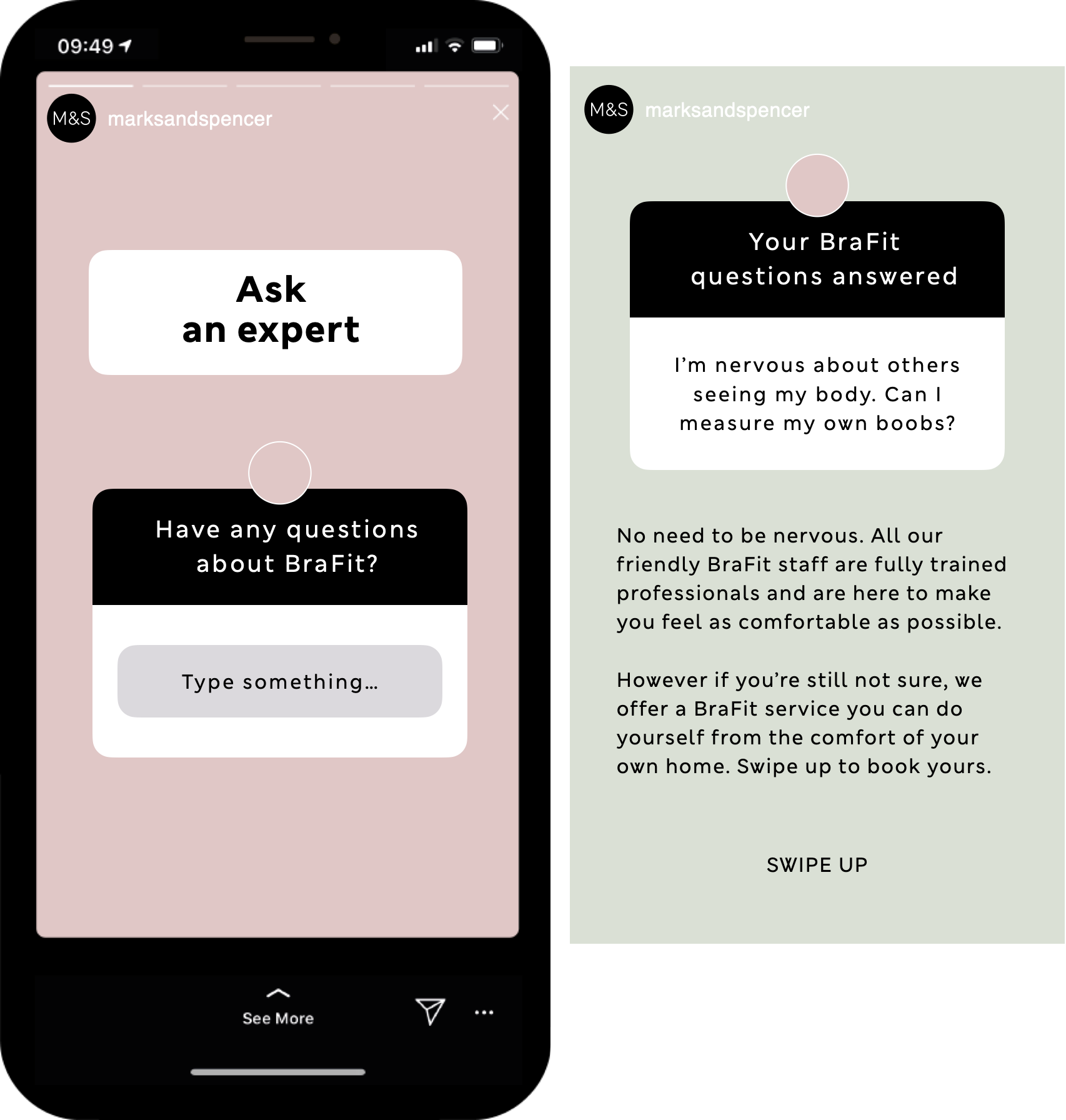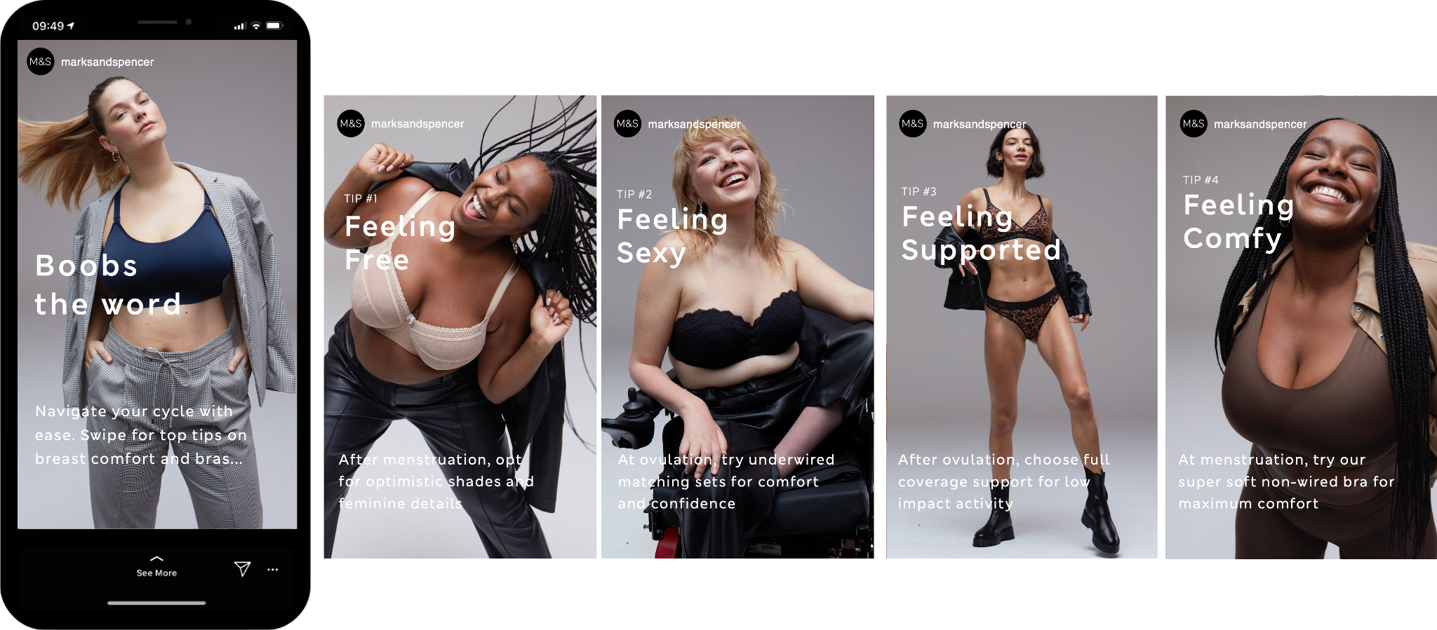 Social was all about informative content. We educated women on how boobs change throughout our cycle, how to check boobs for breast cancer, how to find the right bra for different body shapes - all ultimately encouraging BraFit bookings in store.